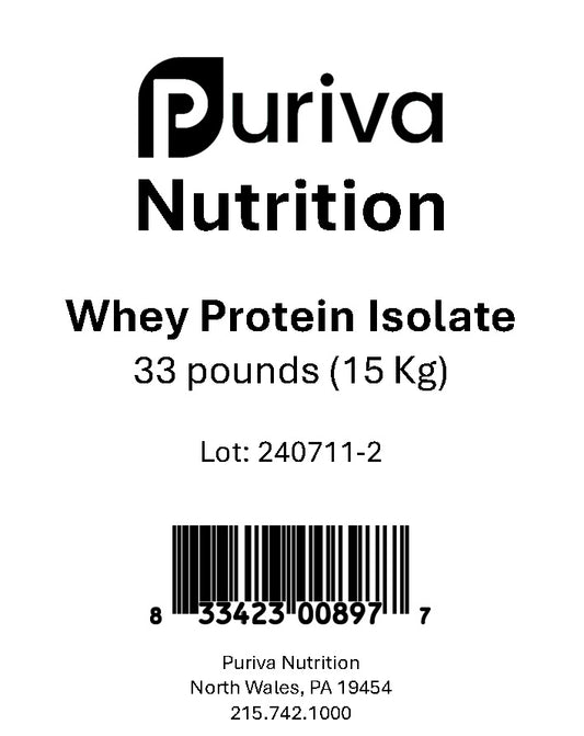 Protein powder, Whey Protein Isolate, plain, 33 pounds, Puriva Nutrition