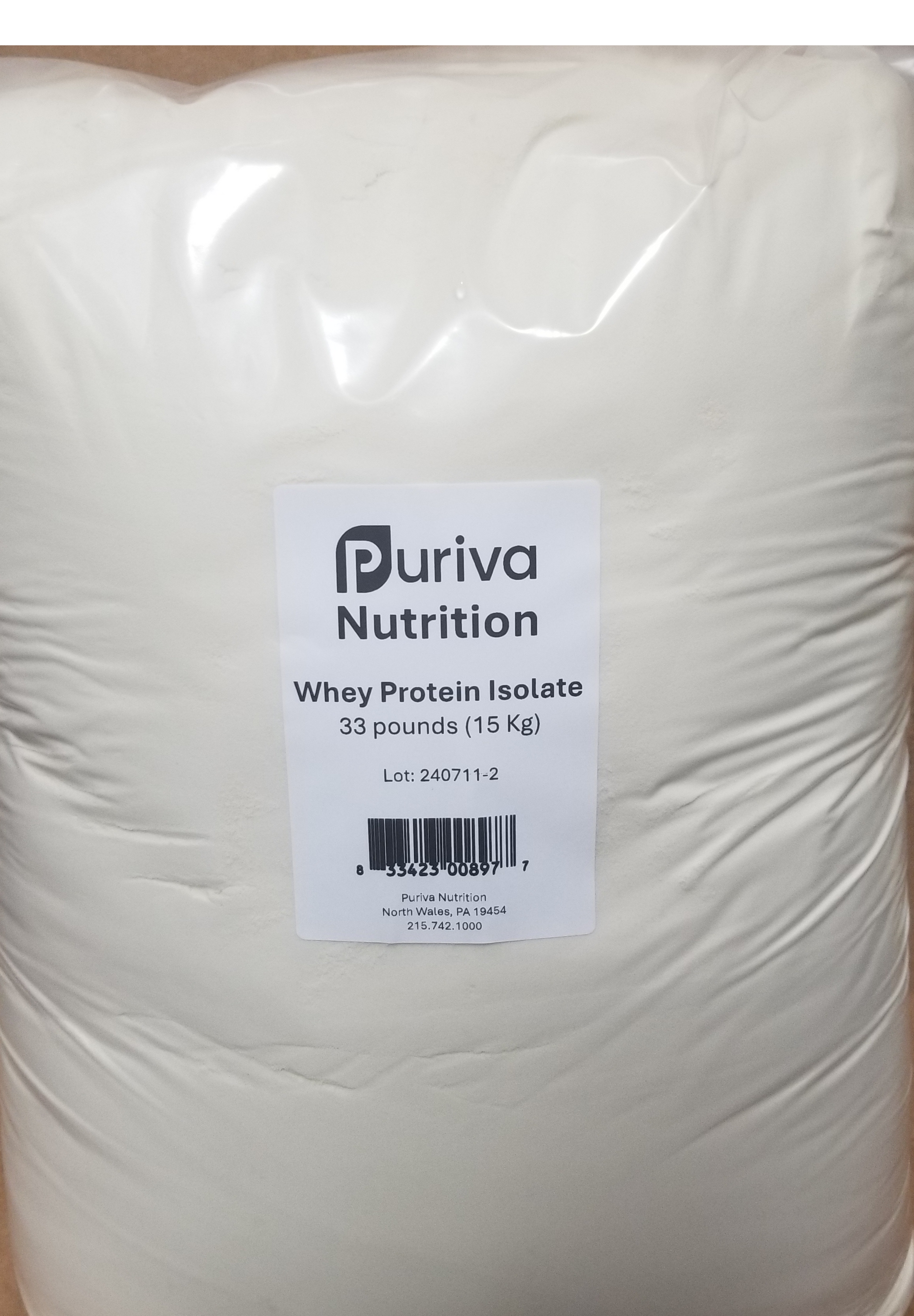 Protein powder, Whey Protein Isolate, plain, 33 pounds, Puriva Nutrition